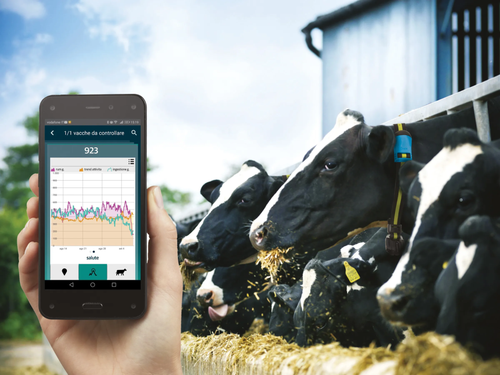 - Monitoreo de la actividad y el comportamiento. Emplean dispositivos como collares o aretes para registrar el tiempo dedicado a comer, descansar o socializar. Tales datos pueden utilizarse para identificar cambios en el apetito, la salud o el bienestar de los animales, lo que puede indicar la necesidad de ajustar la alimentación.